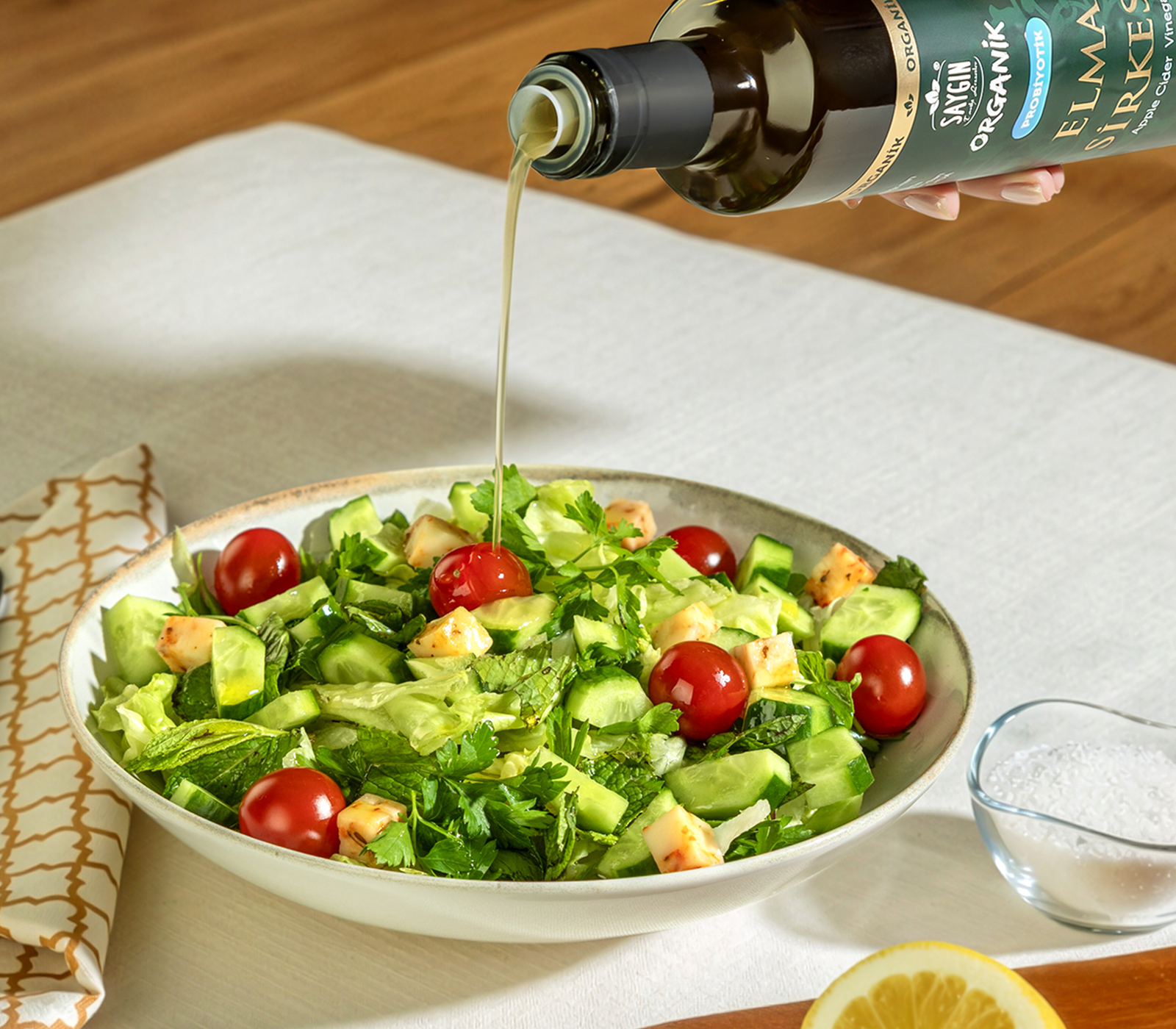 Organik ürünler, rafine edilmemiş kaya tuzu, doğal fermente sirke, katkı maddesi içermeyen tahin pekmez ve taze öğütülmüş baharatlar... Doğaya ve size özen gösterilerek hazırlanıyor.